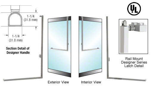 CRL manufactures a complete line of Panic Handles designed with the 'all-glass' door in mind. These elegant devices give you maximum viewing area and a contemporary look when used on 1/2", 5/8" or 3/4" (12, 15 or 19 mm) tempered glass doors.