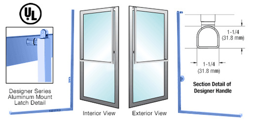 CRL manufactures a complete line of Panic Handles designed with the 'all-glass' door in mind. These elegant devices give you maximum viewing area and a contemporary look when used on 1/2", 5/8" or 3/4" (12, 15 or 19 mm) tempered glass doors.