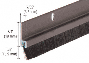 This CRL Extruded Aluminum and Nylon Brush Door Sweep is designed to be applied to the "stop" perimeter of a frame to prevent energy loss and reduce noise infiltration. This Weatherstrip uses thousands of flexible bristles allowing a seal on uneven and even surfaces. Bristles are available in 11/32" (8.7 mm), 5/8" (16 mm), and 3/4" (19 mm) lengths. Supplied with screws for easy installation.