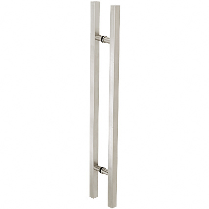 CRL Square Ladder Style Pull Handle are for back-to-back round mounting posts with supplied through-bolts. They are intended for use on doors made from 3/8" to 3/4" thick tempered glass. Stock sizes range from 24", 36", 48" and 60" overall length. Standard finishes are polished stainless and brushed stainless. The pulls are constructed of 1-1/4" square stainless-steel tubing.