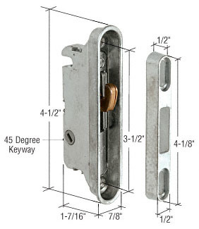 CRL 7/8" Wide Mortise Lock and Keeper with 3-1/2" Screw Holes with 45 Degree Keyway Stock