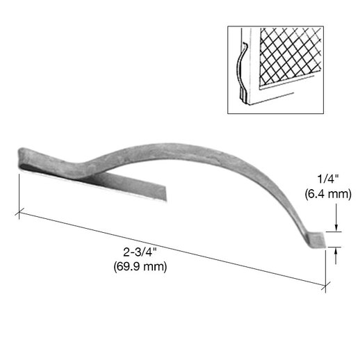 CRL Flat Tension Springs are heat-treated spring steel. They slip into corners of 5/16" to 7/16" (7.9 to 11 mm) screen frame to help hold screens tightly in the window channel. No tools or drilling is required for installation. The spring simply slips into the square or mitered corner joint of the screen frame. For small jobs or retail sales, a package of six springs is available.