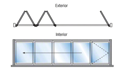 Our Monterey Series Bi-Folding Sliding Door System can accommodate door configurations ranging from 2 to 26 panels and allows them to be stacked with minimum effort to one or both sides, leaving an enormous wide open space. A pivoting door, that will also fold up with the entire system, can be incorporated into many configurations. Design options are virtually limitless. The sturdy, yet slim frame construction allows for more glass and less metal. The Monterey Series is designed for 1/4" to 1-1/4" (6 to 32 mm) glazing thickness, and the frames are available in white, black, and wood grain powder coated, satin and black bronze anodized finishes as standard with custom finishes also available.