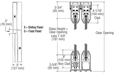 The CRL SDR Bottom Rolling Sliding Door System with 4" (102 mm) Tapered Rails Top and Bottom utilizes our popular Wedge-Lock® Glass Securing System. The DR4T Series Door Rails are used for all door and fixed panels, and are custom fabricated to your specifications. The doors can be ordered with or without locks in the bottom rail. Maximum door width is 48" (1.22 m); maximum door height is 108" (2.74 m), with a maximum weight not to exceed 234 pounds (106 kg).