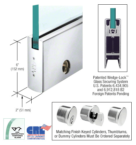 Other reasons to choose CRL Wedge-Lock® Door Rail System: Models are available to accept 3/8" or 1/2" (10 or 12 mm) glass; a rigid single component housing that will not shift and fall out of adjustment over time because it is not made up of two halves; the internal components do not require removal before installation; the glass securing pads are designed for longevity in extreme environments.