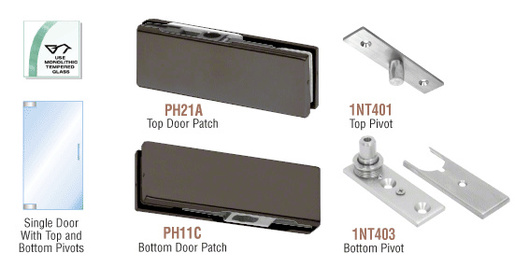 CRL PHE1 European Patch Door Kits come with all the hardware to complete a single free-swinging door (except the glass). Pivot setback is 2-9/16" (65 mm). Floor closers with tapered spindles (ordered separately) may be used with this Kit.