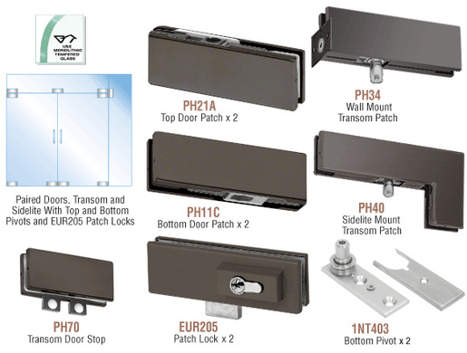 CRL Black Bronze Anodized European Patch Door Kit for Double Doors for Use with Fixed Transom and One Sidelite - With Lock