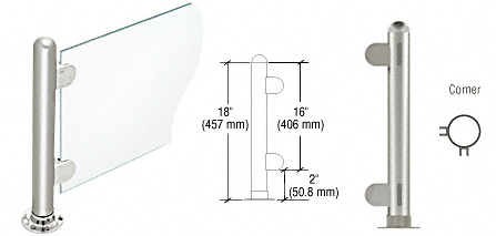 - 18" x 2" (457 x 50.8 mm) Round Posts with 1/4" (6.3 mm) Round Z-Series Glass Clamps and 2" (50.8 mm) Air Space