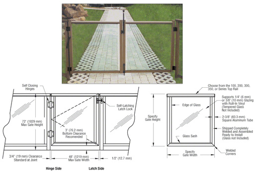CRL Aluminum Rail System Gates are an integral part of most commercial, multi-family, and residential projects. Your choice of gate designs range from basic swinging gates to customized automatic or manual gates. CRL Gates can accommodate standard, electronic or remotely operated locksets, as well as a variety of opening mechanisms.