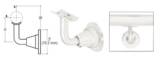 This CRL Newport Series Wall Mounted Hand Rail Bracket is available in several architectural finishes for 1-1/2" to 2" (38 to 50.8 mm) diameter hand railing tubing. In and out measurement of bar, angle of bar and railing bracket all adjust.