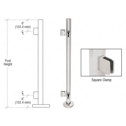 CRL's Glass Clamp Round Post Kits are manufactured from Schedule 40 1.9" (48 mm) diameter Stainless Steel Tubing. Kits are supplied complete with a Base Plate, Base Plate Cover Canopy, Welded Top Cap, and Z-Series Glass Clamps factory attached to the Post.