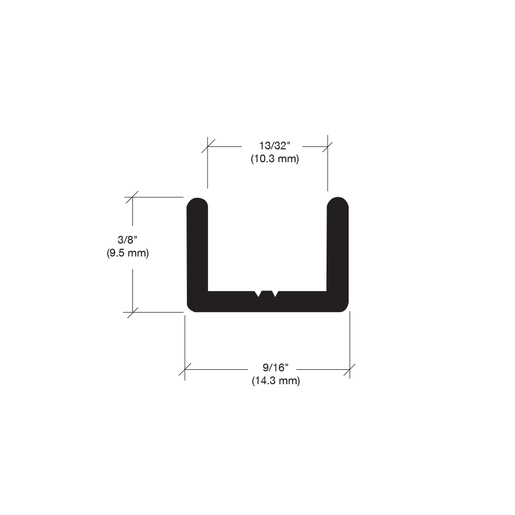 This CRL Regular U-Channel has a low profile. The 3/8" (10 mm) height allows for maximum glass exposure. Regular U-Channel most commonly used on the bottom and side of fixed panels, while the Deep U-Channel is commonly used on top for maximum coverage. Cat. No. 33SMRC Mildew Resistant Clear Silicone is used to secure glass in the channel.