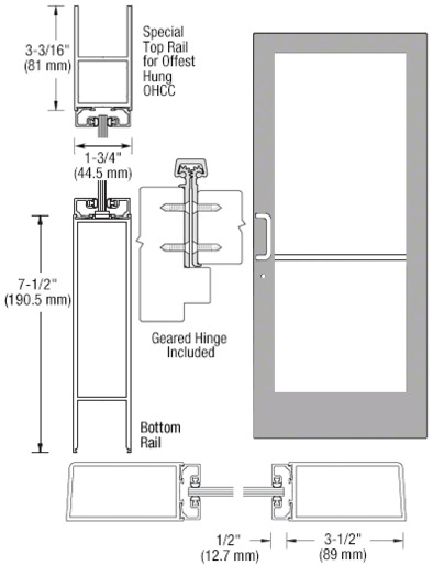 CRL-U.S. Aluminum Clear Anodized Custom Single Series 400 Medium Stile Geared Hinge Entrance Door for Overhead Concealed Door Closer Stock