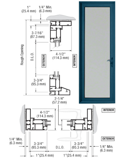 This CRL Series 900 Terrace Door Entrance is built with 1" x 4-1/2" (25 x 114.3 mm) Frame, 2-1/4" (57.2 mm) Thick Door, 3.75" (95 mm) Stiles, 3.75" (95 mm) Top Rail, and 3.75" (95 mm) Bottom Rail. Standard features include stiles for Butt Hinge hardware, glass stops for 1" (25 mm) tempered glass (by others), and Five-Point Locking Hardware.