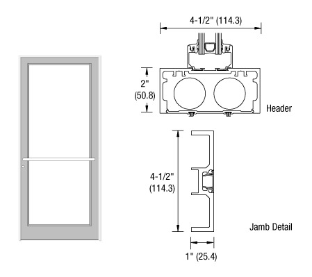 CRL Complete Frame is built to accommodate a custom sized single Durafront Door that is center hung for use with an overhead concealed door closer. Constructed using TJ455/P050 Open Back Jambs with 1G457/P427 Header with weatherstrip, standard hardware, and included hardware preparations.